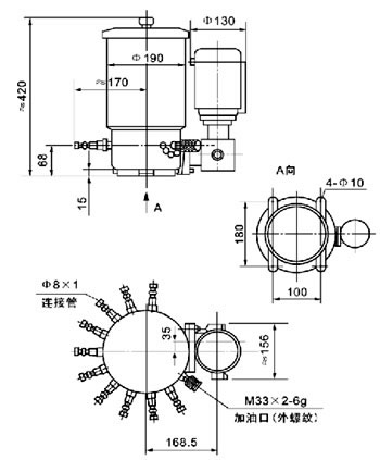 3、向干油泵貯油器內補脂必須使用SJB-D60型手動(dòng)加油泵或DJB-200型電動(dòng)加油泵從貯油器的加油口加入,注意在貯油器內無(wú)潤滑脂時(shí)嚴禁啟動(dòng)電機運轉。