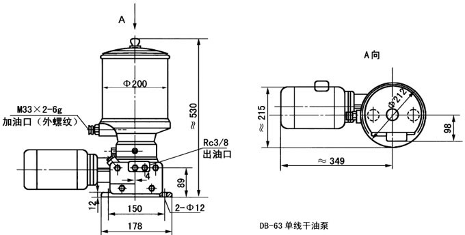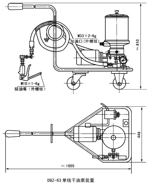 DB-63 型單線(xiàn)干油泵適用于潤滑頻率較低、公稱(chēng)壓力為10MPa、潤滑點(diǎn)在80 點(diǎn)以下的單線(xiàn)小型干油集中潤滑系統中,通過(guò)片式給油器向各潤滑點(diǎn)供送潤滑脂。