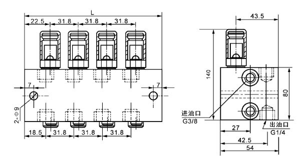 若需相應上下出口合并時(shí),只需將上出油孔內的壓緊螺塞用6mm內六角扳手擰出,取出分油套通孔向下裝入,再擰緊壓緊螺塞,此時(shí)上出口用G1/4螺塞封堵以防灰塵侵入。