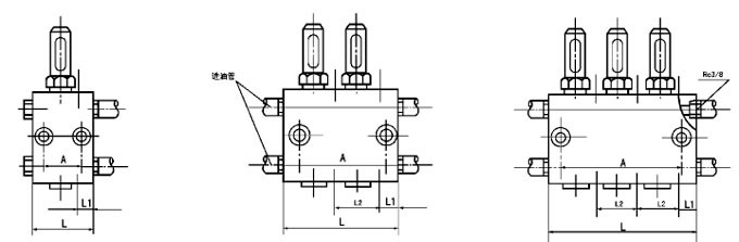 3、給油器的兩個(gè)進(jìn)油口分別與兩條供油管連接,且兩側是貫通的,某一側的進(jìn)油口不使用時(shí)應用R3/8螺塞封堵。
