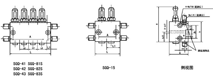 SGQ系列雙線(xiàn)給油器適用于公稱(chēng)壓力為10MPa的雙線(xiàn)式干油集中潤滑系統中,作為一種計量給油裝置。它在二條供油管交替的供油壓力作用下,由供油壓力推動(dòng)活塞給油,完成向各潤滑點(diǎn)定量分配潤滑脂的功能。