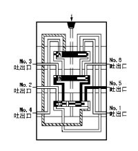 7、流入的潤滑劑推動(dòng)活塞A 向右運動(dòng)、右腔的潤滑劑壓向NO.6吐出口,經(jīng)外部配管送向潤滑點(diǎn)。當活塞A移動(dòng)到至右極限時(shí)返回到初始1狀態(tài),繼續重復上述動(dòng)作。