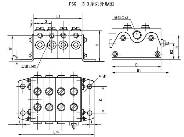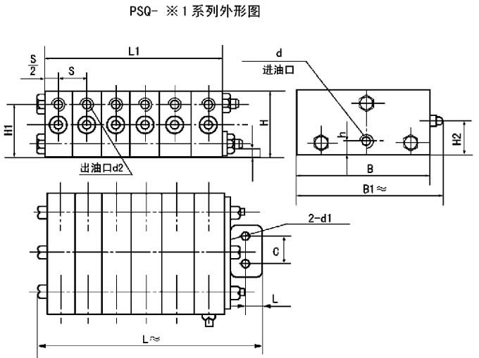 2、如某些潤滑點(diǎn)需要的潤滑脂量大于表列數值,可將給油器任意組合(見(jiàn)附圖)。使供油量成倍增加。