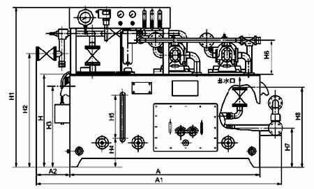 4、型號后帶“A”者為有壓力罐的裝置,可滿(mǎn)足發(fā)生意外事故或突然停電時(shí),儲存在壓力罐中的油液可作臨時(shí)壓力油源向系統短時(shí)供油,但需注意壓力罐上的一般單向閥應水平安裝,不得向下安裝(對較小的旋啟式單向閥允許向上安裝),附圖中應作相應改變。
