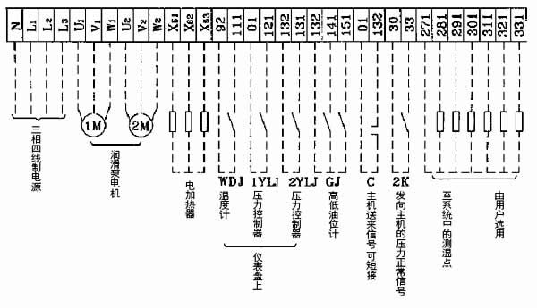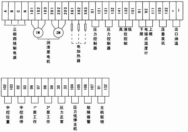 1、XYZ-6G~125G 稀油站電控箱外接端子接線(xiàn)圖 |